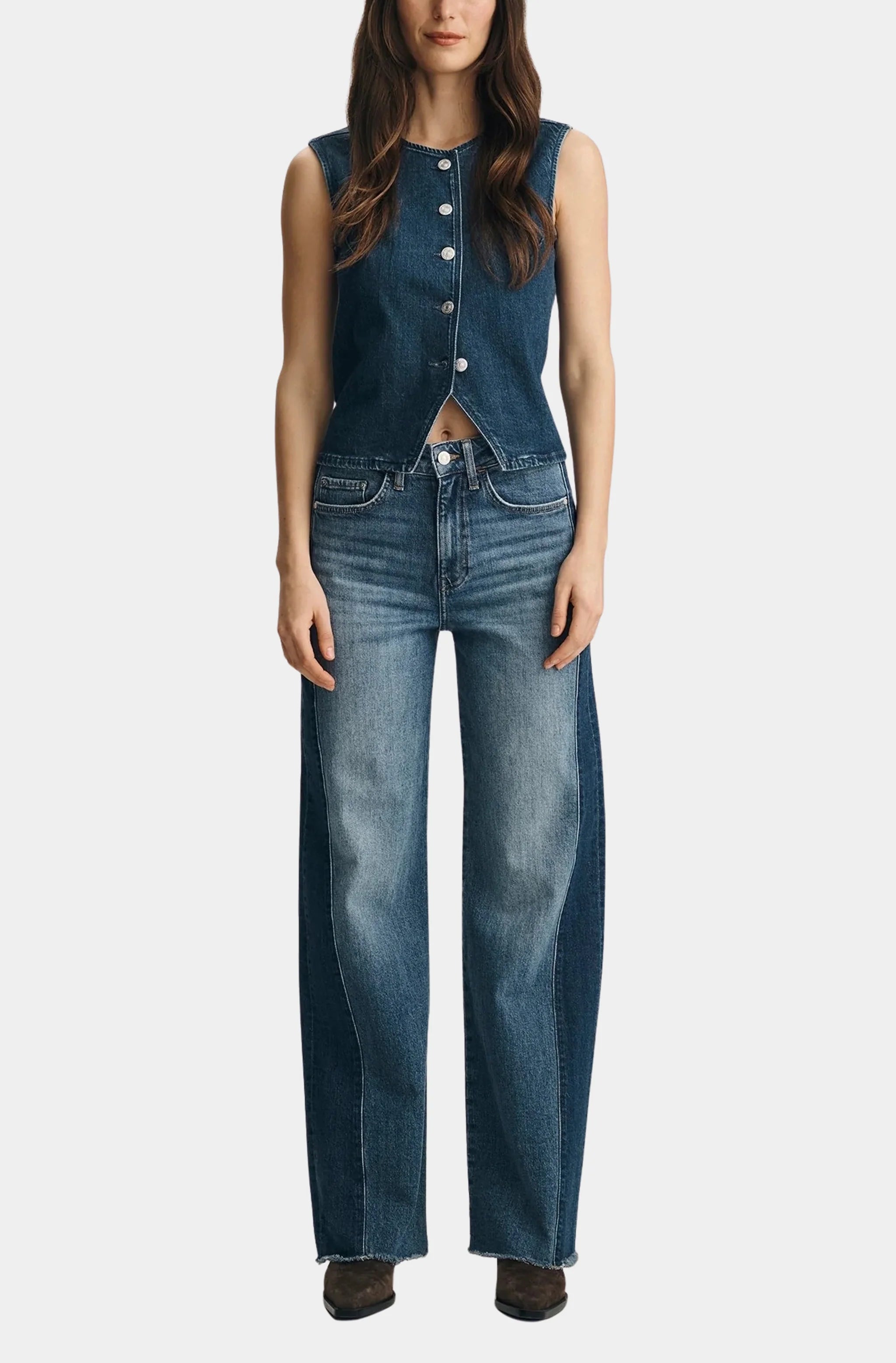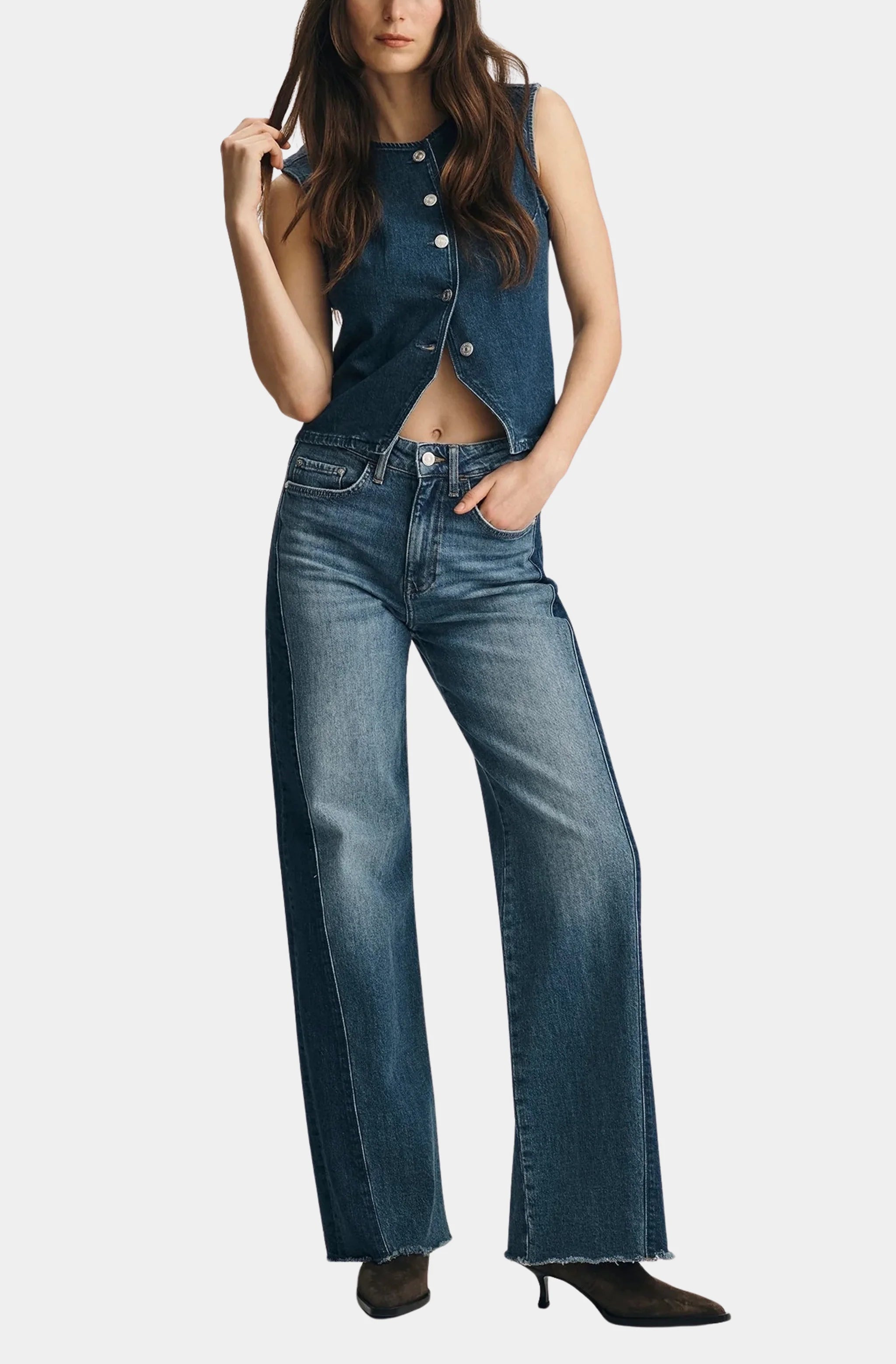 Rosie High-Rise Wide Leg Ankle Raw Hem