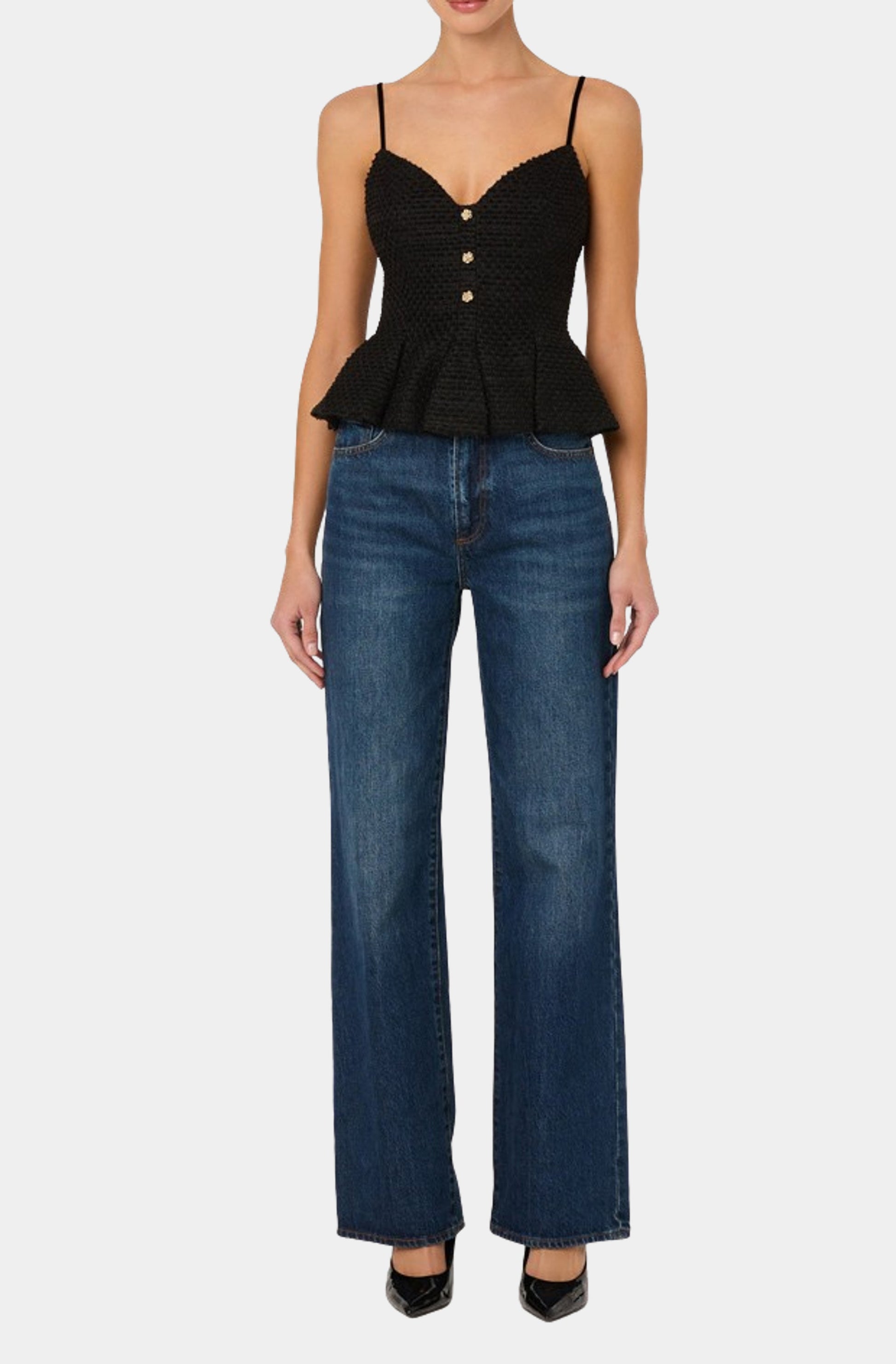 Elevate your wardrobe with the Paislee Top, a chic addition perfect for any occasion. This peplum top features delicate spaghetti straps, offering a flattering silhouette that enhances your style. Ideal for pairing with jeans or skirts, its versatile design ensures you look effortlessly elegant. Embrace comfort and sophistication with this must-have piece.