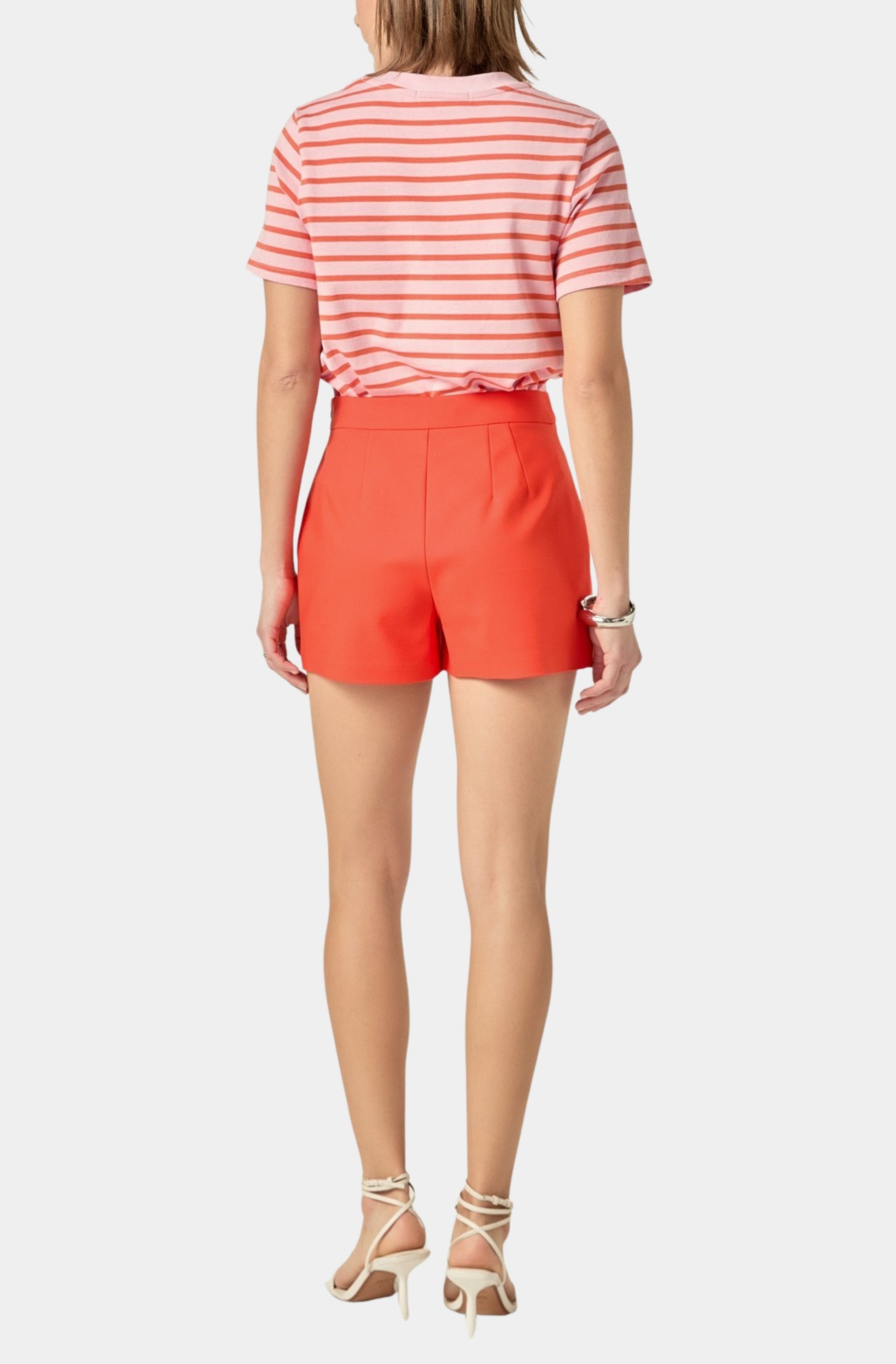 Add a pop of color to your wardrobe with the Sidonie Skort in orange. This high-waisted mini skort features practical welt pockets and a comfortable fit, making it ideal for college events or relaxed outings.
